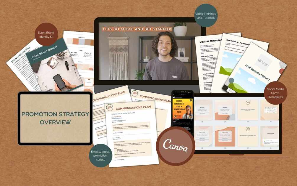 With this bundle, you’ll get a marketing calendar, promotion strategy training, 7 email scripts, 7 pieces of social media swipe copy, and Canva graphic templates for social, email, and web.